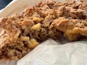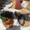 Food was good, huge portions! Service was good, really great atmosphere. Very bright and airy, open air dining available. Got really loud and crowded but we’re ok with that. Easy street parking on a Tuesday. Bakery we bought to go, it was ok.
