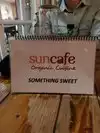 We loved SunCafe! Our entrees included the nachos, a pizza, tofu dish, and lasagna. Our waiter was so nice and helpful picking out entrees and serving with a smile. We sat outdoors under a sunshade. Yum!