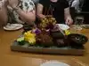 We had some sushi rolls, dim sum and the Kamayan feast. The feast was especially delicious. A combo of crispy pork shank, pork. Belly , Chicken, prawns, rice, green beans, mango abd line. Beautifully decorated either way flowers abd including two dipping sauces. Lovely cocktails. We had no room for dessert. The room is quite loud. We had no room for dessert. .