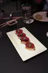 Nice ambience. Gluten free & vegetarian options. Guys at the front of house were friendly, welcoming, & helpful. Nolan, our waiter was very familiar with the menu. We tried both their N/A beverage options. I was excited to see that the Emerald 13 included pandan - very unique! I enjoyed it after adding some water & lemon to offset the incredible sweetness. I would enjoy it as a dessert rather than a cocktail. The strawberry lemonade was fresh tasting & not quite as sweet. We came there for the sushi so we didn’t try any of the other dishes. The menu is set up for sharing which was nice. The red dragon roll was good but predictable. The island roll gave us more of a wrap vibe but might be good if you wanted something really light. Overall the sushi wasn’t bad but IMO overpriced. I have had more interesting rolls.