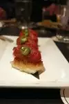 There are so many diverse Asian cuisines, so it's difficult to guess what will happen when you have an Asian fusion restaurant. But Sunda does it very well. You can find a number of items that you might expect in specific cuisines (Chinese dim sum dumplings and pork baos, or beautiful sushi), but more fun are things that riff off of traditional Asian dishes in creative and delicious ways. Everything is served in sizes appropriate for sharing, so it's a good place to go with an adventurous friend and try new things. Everything was served promptly, with just enough explanation to clarify what was happening. It was Saturday night, and the place was jumping. If you're looking for somewhere quiet and intimate, this might not be the place. But if you're up for a little excitement with your meal, Sunda might be just the place to go.