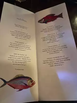 Located within Gage & Tollner, Sunken Harbor Club is a great secret place to go grab a nautical themed drink, if you know the right person to ask! There are 7 tables tucked away in a nautical themed room with a huge bar that makes you feel like you are on a ship, at one end. Our server was friendly, but service was very slow. I was surprised how long it took our server to come back to get our drink orders, even though she only had 7 tables. I went with their Manhattan, which was good. Our other friends also tried a couple of their cocktails, and everyone seemed to like it. A heads up, it is a small room, so be aware of it. There were 3 guys in a corner who bathed in cologne and stunk the whole place up. It was really bad and I am surprised that the management didn't ask them to leave. It really affected our overall experience.