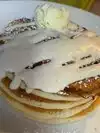 Honestly the food was fine. It wasn't amazing but you could go anywhere & find something similar. It is quite expensive for breakfast. We were a family of four that had: three orders of pancakes with sausage or bacon & one breakfast with eggs, turkey sausage & 1 biscuit with gravy. We had a milk, juice, coffee & a coke. It was $109 after tip. And the 18% gratuity is automatically added to the bill. So service doesn't necessarily matter. Our server forgot our drinks initially. We asked for a couple of things after food was served & they were never brought. I just think $109 is quite astronomical for breakfast that tastes fine, but isn't amazing. The real MVP of this place is the guy who serves the food walking down staircases repeatedly with a big tray & never dropped anything.