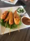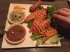 I had the shrimp spring rolls and salmon in peanut sauce. Both very tasty, but the salmon was a bit over cooked.