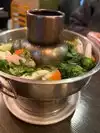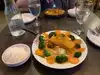 Ordered soup and spring rolls to start. The soup arrived in this big terrine. Far too much for one person. Main courses came out when we were still eating starters. Not impressed by that as we didn't know what to eat first! Ordered a seafood and peanut satay main courses. Good portion sizes and prices per dish. Asked for a doggy bag as we couldn't eat it all!! Lovely coconut ice cream.