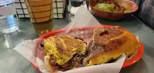 7 of us and we all ordered something different. We were all impressed. Sandwiches, sides and desserts all were great. Very friendly cashiers, servers and managers. Also has 3 bars. Indoors and outdoor seating.