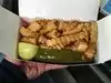 After driving past this place for nearly three weeks, we finally caved in and visited. There wasn't an empty parking bay in sight when we came and yet the service was fast and the food was delicious. My only complaint is that the way they packed the hot dog and chips into the box made it pretty hard to actually get at the hot dog.