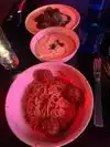 OMG!!! The chicken parm is a regular star in my dreams now. The ambiance is great, the drinks are great, and the food is amazing! I was very surprised at how top notch everything was for being such a different/unique setting. You get a show while you eat dinner in a dark neon restaurant. Pretty cool vibe, I’ll definitely be back for the pizza that I hear amazing things about!
