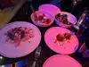 Dark, moody lighting. Neon signs. Furry creatures dancing through the restaurant during starters. Acrobatics from dancers during main course. Saxophonist during post-dinner drinks. It's all a bit unusual and a whole load of fun. Struggled to find anything on the menu that took my fancy and I'm a bit undecided whether I enjoyed my meal. There was nothing wrong with it, it just didn't quite match the fun of the atmosphere.