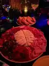 We made reservations before the dinner crowd. We were running a little late and tried to notify the restaurant. We arrived by 6:30 (15-20 minutes late) and to our surprise, we were told that it was no problem because the restaurant was running 20-30 minutes behind. We did hang out at the bar because we were not in a hurry. We got our table an hour after our reservation. I have to admit, I was a huge Rose.Rabbit.Lie fan. I went many times. This has the same bones, but has been turned psychedelic to coordinate with eh show it is attached to, Opium (also excellent). I think the venue finally hit its stride. The food was excellent. Trying a variety of things, there was nothing we didn't like. The calamari was a little chewy, but the flavor was good. Everything else was excellent. The atmosphere was very fun and the sporadic performances made it even more over the top. The staff I spoke to tried to make it sound like they had no association to RRL, but the random performances and performance art (people dressed like penguins or a fake Domino pizza delivery guy making the rounds at the tables) made it very much like those previous experiences. They need to bring back the chocolate terrarium though. That would fit the vibe perfectly, we would have ordered that, but didn't find the dessert menu appealing enough to order that course. All in all, this is a fun, wild, tasty, unique experience that I would highly recommend if you want something zany and adventurous.