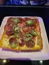 If you want something different, a true crazy Vegas experience, then don't read any further reviews that will give away the surprise. This is like a great movie, that will be ruined if you watch all the trailers that give away the story. Make reservations, arrive 45 minutes early and ask to have a drink in the hidden ski lodge. Dinner: best homemade mozzarella ever, so have this as an appetizer. Big enough to split. Then split a square pizza, they are so tall on sourdough crust that you will probably not be able to eat more than 1/2 on your own, especially with the appetizer. You will be amazed at what happens while you eat. If you want dessert, head back to the hidden ski lodge for the s'more kit. AND this entire lovely night will run you under $100 for the ideas listed above. Our mistake was ordering 2 pizzas since they were smaller. I had the pepperoni which came with jalapenos. My friend had the ham, bacon and pineapple. We both loved what we had but could not finish more than two of the four pieces...and we are good eaters and wanna be foodies. So delish!