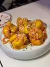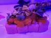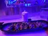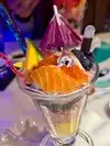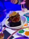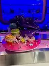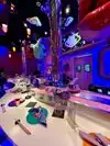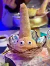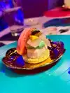 What I actually experienced was even crazier than I anticipated. The restaurant is small, and features seating for perhaps 50 people. A hostess clad head to toe in cosplay quality Kawaii dress greeted us enthusiastically. As we were shown to our table, I noticed a Japanese style sushi conveyor belt, only there was no food on it. There was art. Above our heads, light fixtures were giant lipsticks, massive floating cute cat heads, and mirrors cut into the shape of clouds. Everything in here seemed to glow some color or the other, like you were about to have a meal at Willy Wonkas Japanese uncles house. The menu was a single sheet, and had all kinds of odd and interesting items. To make sure I got the full experience, I opted for the “Pure Imagination” omakase dinner. Glad I did that, because this has to be the most fun and immersive way to have dinner here. One course at a time, the kimono wearing server brought small plates that were neatly decorated with flakes, sauces and even rice in different colors. Each of these plates was kind of a work of art in itself. A plate with a potato monster, a metal carousel with sushi riding along. A sauce plate in the style and colors of a paint palette. The finale was an item called the Chirashi Parfait. It featured 18 different items, presented in the style of ice cream, but absolutely sushi. Radical. The cocktails were fun and they had many non alcoholic items as well. I got quite full and wondered how much more I may be able to handle, but decided to call it quits and be content with what I had eaten. Just before I requested my check, I noticed some boxes in a hallway. Inside clear bins, were those bears from the 6%DOKIDOKI store in Japan. I couldn’t believe it. I bought one as a souvenir but I have a very special little girl in mind that I think would love an Easter surprise. Overall the whole place was fun, I would recommend it to any sushi enthusiast in NYC, especially the adventurous and colorful of you. Considering the fun spirited theme of the place, I’m sure you can wear whatever you want in. You’ll be wearing a huge smile on your way out.