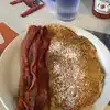 Their pancakes are very similar to French crepes (same taste, just slightly larger in size), I liked them very much. Everything else was just regular American breakfast (bacon, eggs). Pretty cheap but portion are rather small too. Waitress was nice and attentive. Place can get very busy after 9:30 am. They only take cash!