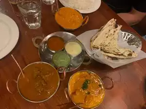 The restaurant was close to our AirBnB. We were looking forward to some delicious food and this place did not disappoint. We were seated right away on a Sat evening. The decor was nice with paintings and statues. Our waitress was super nice and friendly. She didn’t hover but was around when we needed her. We ordered lamb pasanda and tandoori mixed grill both with the dinner option. It was a lot of food! Rice, naan, beetroot curry, raita, lentil soup and a dessert came with the dinner option. The lamb was very tender and the sauce was very flavorful. The mixed grill was tasty. The naan was crispy but didn’t have much flavor as it was plain. This place is worth a stop. You’ll get good food probably with no wait.