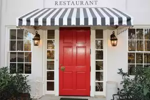 quiet, delicious food, white linens. even the locals eat there. does look like a converted coach house but what a fine job they did. if you close your eyes, its easy to picture pre civil war gentry dining.