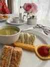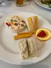 The dining room is exquisitely decorated. The table clothes are layered for a feminine touch. All linen clothes and real china grace the table. I ordered the cold peach soup. What a delicate treat for the taste buds. It was puréed sweetened peaches. The tea sandwiches were two pimento on white bread with the crust removed and two chicken salad sandwiches. Our dessert was key lime pie which was light and delicious. Do browse the gift shop. Many treasures await your purchase.