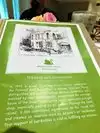 The restaurant was warm, friendly and had a delightful menu. It's an ideal location for special occasions, girls luncheons, bridal showers and much more. The menu was lovely and the surroundings a beautiful "step back in time".