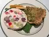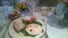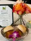 Lovely lunch! The Moroccan mint tea and the ginger tea were great. The chicken salad was great. Loved the frozen fruit wedges. The ham biscuits were great - especially the orange marmalade. The fried green tomato salad was great as well! Excellent service as well