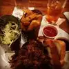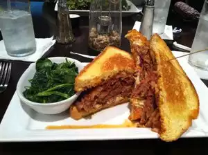Only had the greens and a few moonshine mixed drinks, but the food arund us looked amazing. The greens wwere spot on out of the south and the vibe from the patrons and band was hospitable and groovy. I band was off the hook and had everyone on their feet getting their boogie on. Mst go and will return.