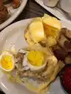 Our server was not great but the rest of the staff including the singer with the band were awesome. My daughter had the fried chicken and eggs. I had the pulled pork biscuit. Everything was delicious. You do have to pay $5 extra to sit in the main dining room because there is a live band.