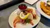Bacon wrapped shrimp was excellent!! The reason for the poor review is that the in restaurant menu shows fried chicken and waffle. Unfortunately, it’s actually less than tasty fried chicken wings with a great waffle.