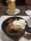 Stopped by here after a concert downtown to get some dessert. Tried the peach cobbler and bread pudding with ice cream for an additional 2$ each. The ice cream was melted when it came out. Deserts were average and not worth $10 each. Be aware they charge you $5 on your bill to sit here when they have someone playing music.