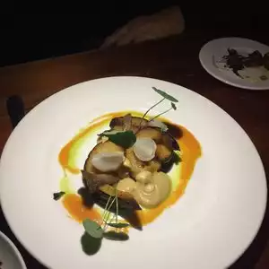 Wow. Wow, wow, WOW. Very interesting menu, must go back and try other things. I had the brussel sprouts side, plus the quail. Both dishes had me pausing to waft the wonderful aroma's and the taste was exquisite. Sat at the bar - a friendly scene and service great. HIGHLY RECOMMENDED.
