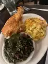 made reservations but was walked past several open tables to a table that had a crusty, ugly spiral staicase that led to a basement. the cornbread was good, it had a hint of cinnamon. ordered an entree of fried chicken and ribs with collards cow peas and rice and mac and cheese. collards were good but everything else was ok at best. still trying to understand the "soul" food thing?