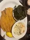We had Sylvia's as one of our "must visit" places on our trip to NY and we weren't disappointed. Everything we ordered was delicious....bbq salmon, fried whiting, mac and cheese, candied yams, traditional collard greens (with smoked turkey), potato salad, and green beans...followed by peach cobbler for dessert. We were served promptly and our server was pleasant and helpful. I will definitely be visiting the next time were in NY city.