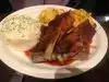 I had mixed good and not so good things to eat. First of the ribs were good but not great. The sides I had were collards and fried apples. The collards were not so good, they were tough and old. Not like the tender collards we get in NC.. Fried apples good. Overall not up to my expectations.