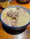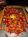 In design this place seems to be lifted straight from somewhere in China, the decor is elaborately full of recognizable Chinese elements - with a small raised section in front next to a koi pond (although didn't see any fish in it, too dark maybe), the dining room with bamboo sectioned booth seats and woodwork panels everywhere including on the ceiling. Place is super busy, no reservations accepted so have to just go - note all parties have to be complete to be seated. If there is a line, you'll get a number and then be seated in that order when everyone in your party arrive. We got there about 6 and luckily were seated promptly in a booth seat - the last empty one available so didn't have to wait. Diners here this evening seemed almost all Asian, majority Chinese and young (average age around 30). Waitstaff also prefer speaking Chinese (when I called earlier the phone was answered in Chinese as well). But English is also spoken here so rest assured all are welcome even though non Asians are definitely in the minority. The signature dishes seem to be the spicy soupy boiled fish or meat which have somehow have gotten very popular lately. Menu has photos which makes ordering easier although the photo quality could use some improvement. We tried the spiced beef (cold appetizer), pepper fried chicken, Chinese watercress and spicy whole fish - the beef was delicious, the chicken pieces a bit too small and seemed to be mostly pepper, and same for the fish which was a bit too oily - it was like the style is for the condiments to completely smother the dish itself. That said, it was a pretty fun dining experience - amazing to have a restaurant like this in St Marks Pl and the atmosphere alone is worth checking out.