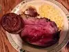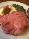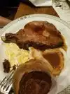 Really enjoyed the food. They have a counter you can walk up to inside the restaurant and order prime rib that's cut right in front of you. Ask for the size you want and if you want blood running or not!! Mine was delicious. Others in our group had the sandwiches and they do offer sandwiches other than prime. Didn't really look at the lunch menu because the prime was was highly recommended and it was really good. Received spinach, mashed potatoes and corn with my meal. The bread on the table was also very good. Service was very friendly, but the price wasn't. Way too expensive for lunch, but I should have looked at the menu.