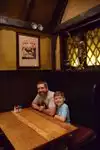 My husband, son and i went for dinner last night. the theme is old fashioned british/scottish pub so set your expectations. there are several dining rooms with varying degrees of charm. the outside seating is quite simple and lacks charm so we sat inside. i checked out the rooms and wanted the very back room with i think is the nosiest but was told we couldn't sit there even though it looked like there were plenty of tables for 3. anyways, we were sat in a smaller room which was fairly nice. ambience- cosy and old world. sort of like being on a harry potter set. nice bar in front. wait staff in varying degrees of garb. i saw one server who looked like a patron. a bit odd. lots and lots of history intertwined with walt disney and the old van de kamp family with tons of interesting artifacts and pictures on wall and ceiling space.. service- very pleasant. it looked like the wait staff were professional long timers so that's always pleasant. we did order a beer which never came though. food- solid food at slightly high prices. we had the rarebit, wedge salads, prime rib, filet mignon and short ribs. everything was tasty and nicely done, as ordered. this is stick to your ribs pub food. i don't think i like rarebit but it was interesting to try it. don't expect to be wowed with innovative cuisine. the chocolate souffle had to be ordered early because it takes 30 min. it was quite good- not too sweet. this is similar food to lawry's which is the affiliated restaurant. i was a bit disappointed they don't have scotch eggs on their menu cuz i wanted to try that. overall- a nice event place for special dinners or family reunions. prices are a bit high but not terrible, and the food is quite decent. we had a very nice dinner and the decor made it memorable. try to get a table in the back room for the best ambience.
