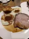 I love a good prime rib and, having English heritage, miss a good Yorkshire pudding. I ordered their Tam O'Shanter cut, which is thick with a bone. Comes with the aforementioned Yorkshire pudding, mashed potatoes with gravy, and either creamed spinach or creamed corn. I chose the latter and it was one of the best creamed corn I have ever had. A bit pricey, but a unique location and, if you're a first timer, they are glad to show you around and give you a bit of history.