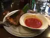 We had a large Margherita pizza to share. The tomato sauce was particularly good. Mozzarella cheese was probably on the short side. A good place for a tranquil dinner.