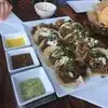 Delicious food! Fast and friendly staff. We tried the combo of tacos. They were all really good. We liked the one our waiter recommended the best- Taco of the Week! The sauces were good too. We really like the atmosphere too.