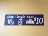 We were served so quickly I suspected that the food was pre-prepared! Drinks a couple of minutes after the order with a complementary basket of tortilla chips. Food 3 or 4 mins after drinks (only 4 tacos to share). Pastrami taco was very good, carnita taco good shredded beef. 3 sauces ranging in spiciness from the mild green to the very spicy orange sauce. Beers 6$ for Pacific 12 Oz. 35$ incl tax. The bill was brought to us without asking. Whether because we weren't big spending young people or because they always aim for a quick turnover it suited us, we hate waiting for the bill.