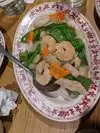 This restaurant is a longtime Seattle Chinatown (International District) tradition. I'll start by saying that this is a no frills venue, nothing spectacular about the interior but if you want good authentic Chinese food you've come to the right place. I've been here many times over the years and the food has never failed me. The downside first... The restaurant building has suffered a recent fire and half of the dining area has been cordoned off. They've moved tables closer together in the remaining dining area which makes the place seem uncomfortably crowded. I had to sit sideways at my table to accommodate at person at an adjoining table. A bit unpleasant. Along with that, it seemed as though the waitress was rushing us along in order to turn the table. I would have preferred a more leisurely meal although I understand the necessity to crowd and rush. Hopefully the restoration won't take long but I won't return until is is finished. On to the good... The food is incomparable. The three of us ordered broccoli with beef, a combination plate and fried squid. As soon as we took the table, tea and water were provided. Soon after ordering, complimentary bowls of soup were provided. It was a very flavorful broth with chopped bok choy, no protein but a very nice starter while we waited for our entrees which came quite rapidly. My fried squid was perfectly cooked and was far more abundant than expected. The broccoli dish came with well cooked beef and the broccoli still al dente, unlike most cooks who overcook their vegetables. The combination included almond fried chicken, soft noodles and a vegetable saute; well prepared and plated. Don't go looking for a luxury bathroom but they are clean and serviceable. A great Chinatown experience not to be missed but I'll leave it up to you whether you choose to make it a regular rotation on your restaurant circuit.