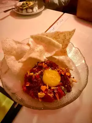 This place is super busy and highly rated. I loved the lotus root salad and the frog legs and chicken wings. Highly recommend the oysters and goat curry as well. The ribs and the tartare were duds. Especially the tartare was disappointing as I am a huge fan of tartares and have had hundreds. This would one would definitely be a lower quartile one… still I recommend a visit, it is a fun location with a fun menu.