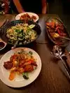 3 of us arrived first, for a group of 10; had to wait in lounge until everyone arrived (understandable but it was late almost 10pm Got a great table for 10 under the giant Buddha we tried a variety of dishes; everything was delicious. Only drawback was the server had a bit of an attitude, commenting on some orders (we had declined the suggestion for family style fixed price) Everything I ordered (and had shared a few things among those seared nearby) was delicious