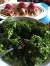 We used to live in Manayunk; it's hard to keep up with the restaurants and eateries on main street that have opened and closed since we moved out of town. Taqueria Feliz is one that opened well after we moved out and we're very happy we finally gave it a try. It'll be the first of many future visits. We each did the lunch combo deal; we each chose the kale salad. She got the chicken tacos for the second course and I went with the carnitas. The kale salad was nicely dressed and featured very fresh ingredients, radish, shaved Brussels sprouts. It had crispy chickpeas that were actually crispy (it's a popular ingredient that I have bad luck with- they're stale or cold etc.). Her chicken tacos were amazing- stewed, tender chicken, some pickled cabbage... my carnitas tacos were even better. The pork was slow roasted, pulled then crisped somehow...the proteins in both sets of tacos are much more than you get in other such ristorantes for the price. So much food. For $14.95 you get a kale salad (pictured) that you can eat for 10 minutes without so much as making a dent. There was nothing lunch portioned about the platters of tacos either. At the risk of sounding cheap, when we saw that they charge for chips and salsa, which admittedly is not uncommon nowadays (does cafe noche still do that? are they still open?), they charge extra for fresh fruit in a margarita (our Santana was amazing but didn't come with so much as a garnish of lime) and in general we got the initial impression that they nickle and dimed customers. This turned out to be false. We left very satisfied- I hope the extra revenue translates into a long lasting establishment on a street where only a handful survive for years.