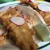 Best I ever had. Grilled tilapia and airy light flour tortillas. Husband had chicken tacos on corn tortillas (gluten free). Many options for g. f.