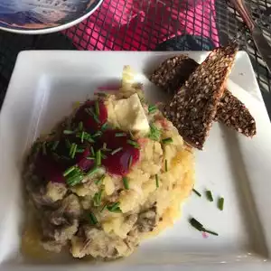 My aunt lives in the area and suggested we should eat here to explore something new. The service was wonderful, patiently explained the menu and answered all our questions. (We could tell she really enjoyed interacting with us) After ordering she brought out a sample of the most amazing rye bread, pickled red cabbage and some sauce to spread on the bread. Wonderful start of the meal. We decided on the meatballs and a Danish pot pie for main course. Everything seasoned to perfection and so fresh. I don’t get to see my aunt very often but when I do now I know where we will eat. I advise to book a table it’s a small restaurant and while we were there it suddenly got very crowded very fast.