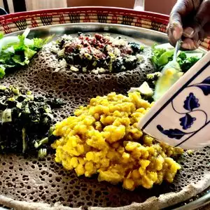 Taste of Ethipoia is a favorite of mine in Austin. They offer a buffet for lunch but I am a fan of the vegetable samplers. Tasty flavorful food in a friendly environment.