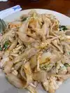 A friend and I came for lunch. I had the pan fried noodles with chicken, with the small wide noodles. Our food came quickly and was very tasty. The portion was huge - for lunch we honestly could have split one entree between us. The space inside is very limited and crowded, but there's lots more space to eat outside if the weather is nice. Cash only for payment!