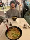 Be prepared to wait a while for your food ,Once itās yours- itās just delicious. Savory , loaded with meat , noodles veggies. Really good. Sit in communal tables but people mainly keep to themselves on their phones