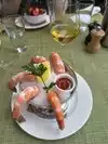 We were here for my 40th and we revisited it 26 years later for my husband's birthday with our elder son (the younger was on a road trip the other side of the country). We sat outside in the lovely garden. We had starters and then lobster rolls but I think the son had much more! Only one issue, the son asked for another beer and after 15 mins we chased it up. It took another 15 mins to arrive!