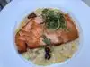 Nice location in the park. Sat outside in the garden under the lights. The salmon was deliciously not dry. Service was fine.