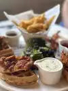 I have brunch here when I come visit my daughters in Austin. It is always great…today was exceptional! Our server Malaki was personable, prompt, fun and knowledgeable. He supplied outstanding service! The food was mouth watering good! Chefs kiss! We had the chicken and waffles along with a steak and eggs special, the lobster and truffle sauce on top of the steak was to die for!