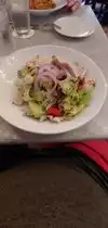 The Marco Polo salad was good. A little heavy on the ginger dressing. The only ingredients that I was aware of was shredded romaine, green onions, 2 mandarin orange slices, and 5-6 1"x1"x1/4" slices of salmon that were sesame seed crusted. The salmon was cooked perfect, however it tasted salty to me. For a $19 salad I was not impressed by the amount of salmon included. My wife had the veal parmigiana. It was overcooked and lacking in cheese topping or marinara. They did, without any prompting or expectations, take it off the bill. The half-off wine (Monday's) was a deal and the beer prices were reasonable. Very busy even on Monday night. We had no wait for our table thanks to reservations. It took our waitress a more than 5 minutes to take our drink order and almost 15 before our dinner order was taken. We explained we were going to a show across the street at ACL and she said she would expedite our order. We thought an hour and 15 minutes was enough time, but I will budget more time next time. Yes we would go here again. Our waitress never checked on our food even though she did not deliver it. We were told by the food delivery person she would return with Parmesan and she never did. Nor was I offered cracked pepper for my salad. Tiny nits, but for the prices (though not unreasonable) I expected better service. The music speaker behind the hostess sound was very loud and apparently was broadcasting for the whole restaurant. We could not hear anything the hostess said to us. Getting our cork for our wine bottle and check took a long time after we were told she would bring it 5+ minutes and it was wrong as the wine was full price. We saw other servers working feverishly and assume ours was new.